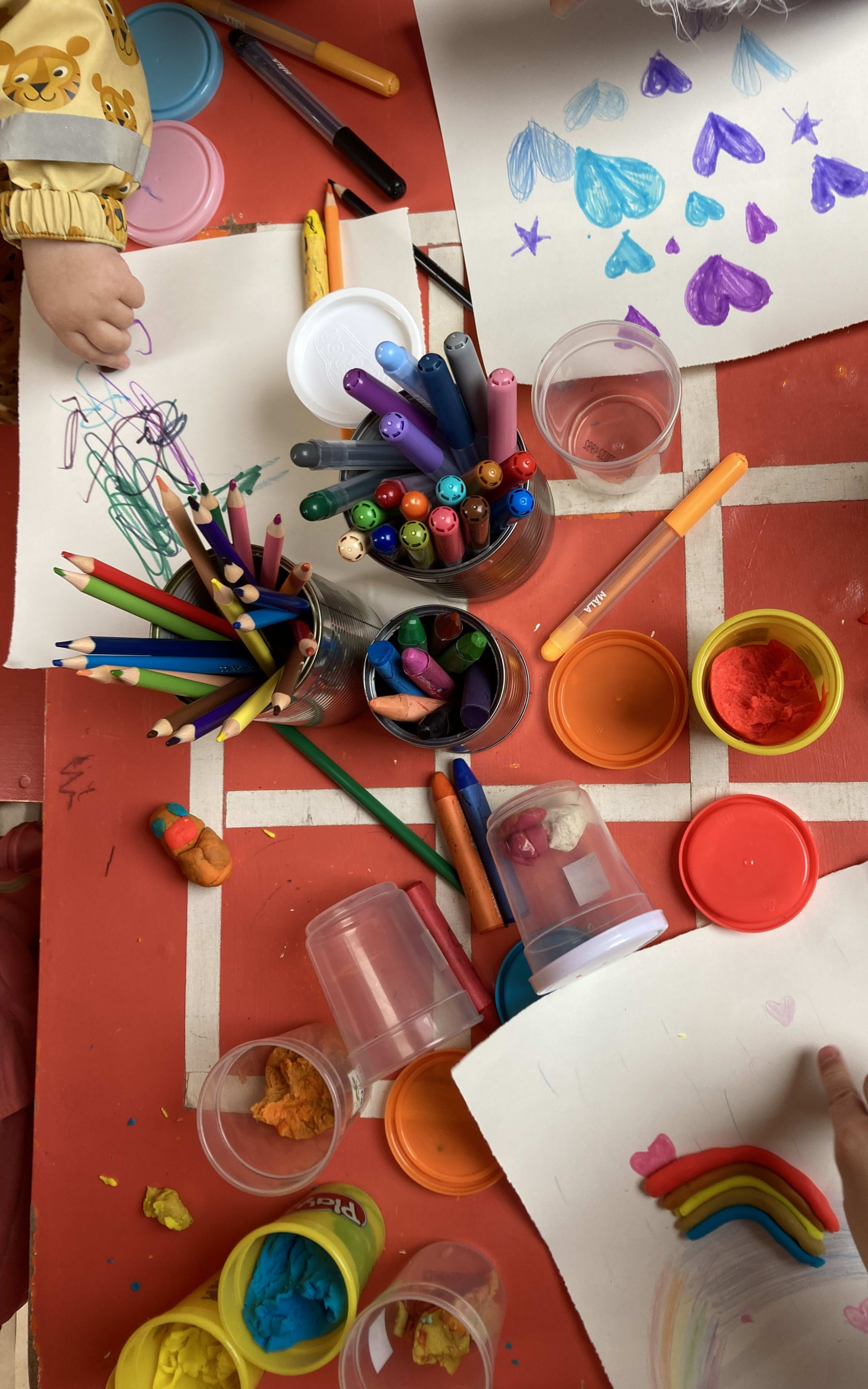 In the art workshop Imagine, children and families are welcome to contribute to a living work of art by playing music, drawing or making small objects.